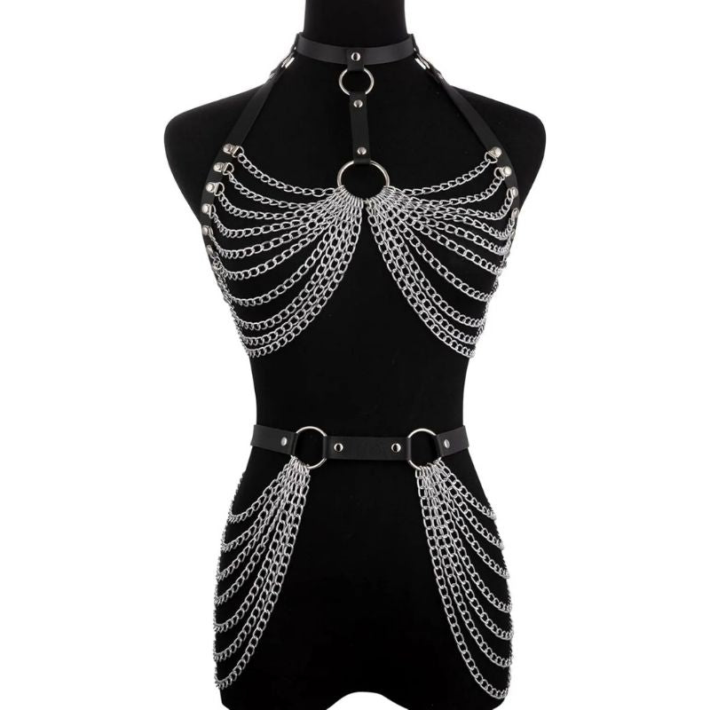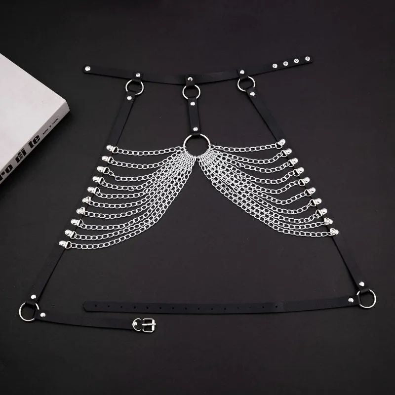 Our Harnesses offer a bold fusion of industrial Berlin grit and unruly attitude, made for ravers who want to express their darker alter-ego. Crafted with sleek straps and silver accents, this is your second skin for unfiltered energy on the dancefloor. Amplify your presence and make a statement at your next rave or festival.
