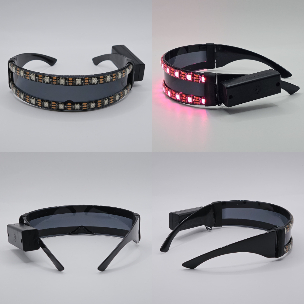 Illuminate your night with our Cyber LED Glasses, the ultimate statement piece for any raver who refuses to blend in. Featuring a slick, futuristic design and remote-controlled LED & pattern customisation, these glasses will radiate your aura through the dancefloor. Lock in and embrace the energy at your next rave or music festival.
