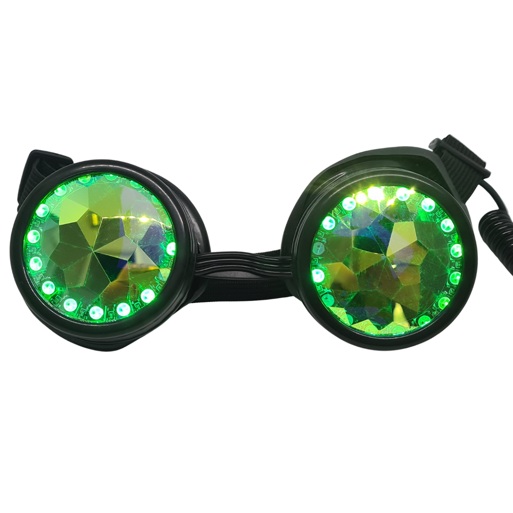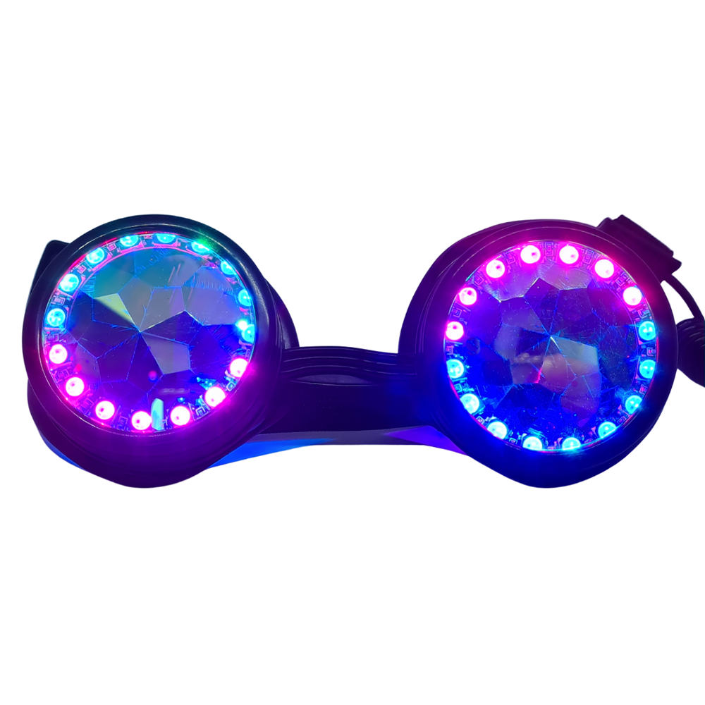 Our Halo LED Kaleidoscope Goggles fuse mind-bending fractals with customisable vibrant LEDs, giving you full control over the chaos. With the click of a remote, change colours, patterns, and effects to create your own atmosphere. Warp your reality and illuminate the dancefloor at your next rave or music festival.