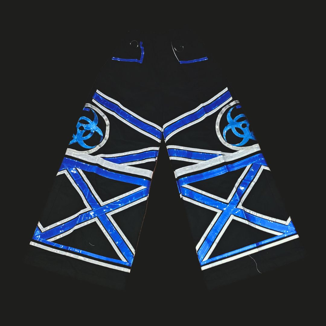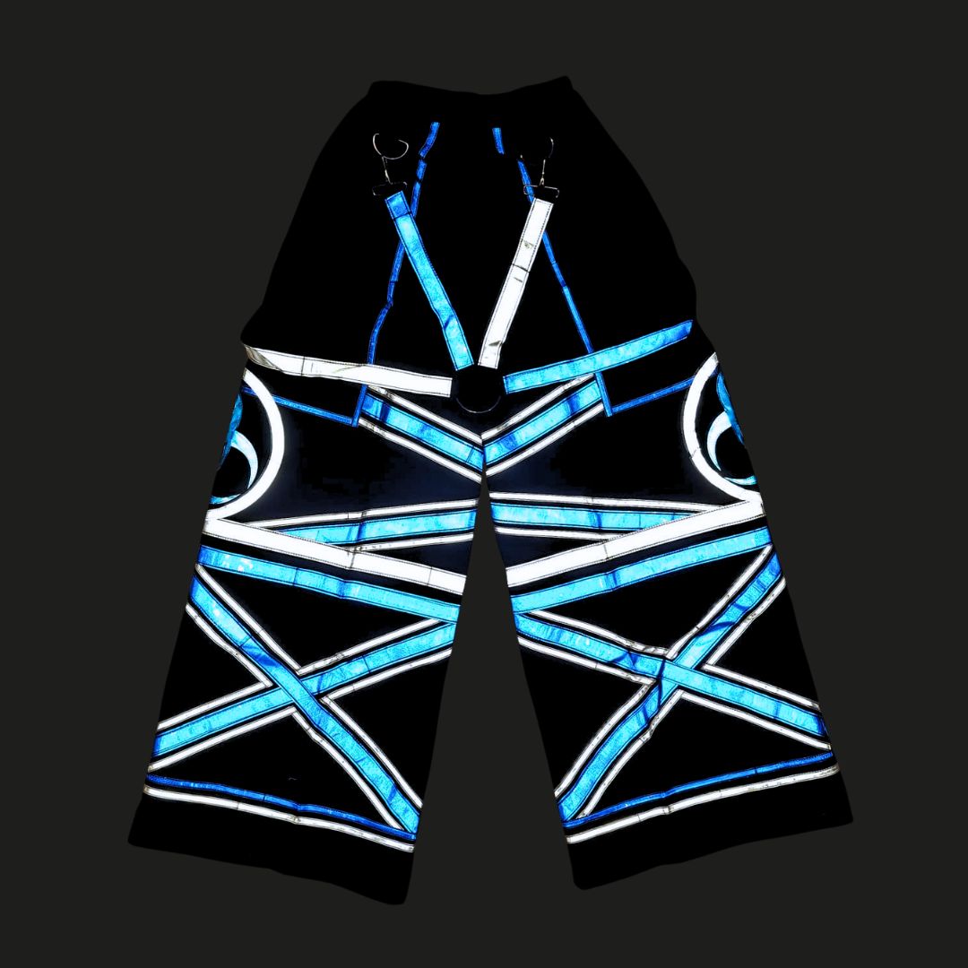 With the explosive resurgence of the Melbourne Shuffle, we had to bring Phat Pants back - reborn from the heart of Aussie rave history. Featuring exaggerated flares, vibrant reflective panels and bold suspenders - these are the iconic shuffle pants you've seen in every Melbourne Shuffle compilation. Every kick, spin, and slide becomes a visual assault, amplified under lasers and strobes. Join the revolution, embrace the nostalgia and own the dancefloor at your next rave or festival.
