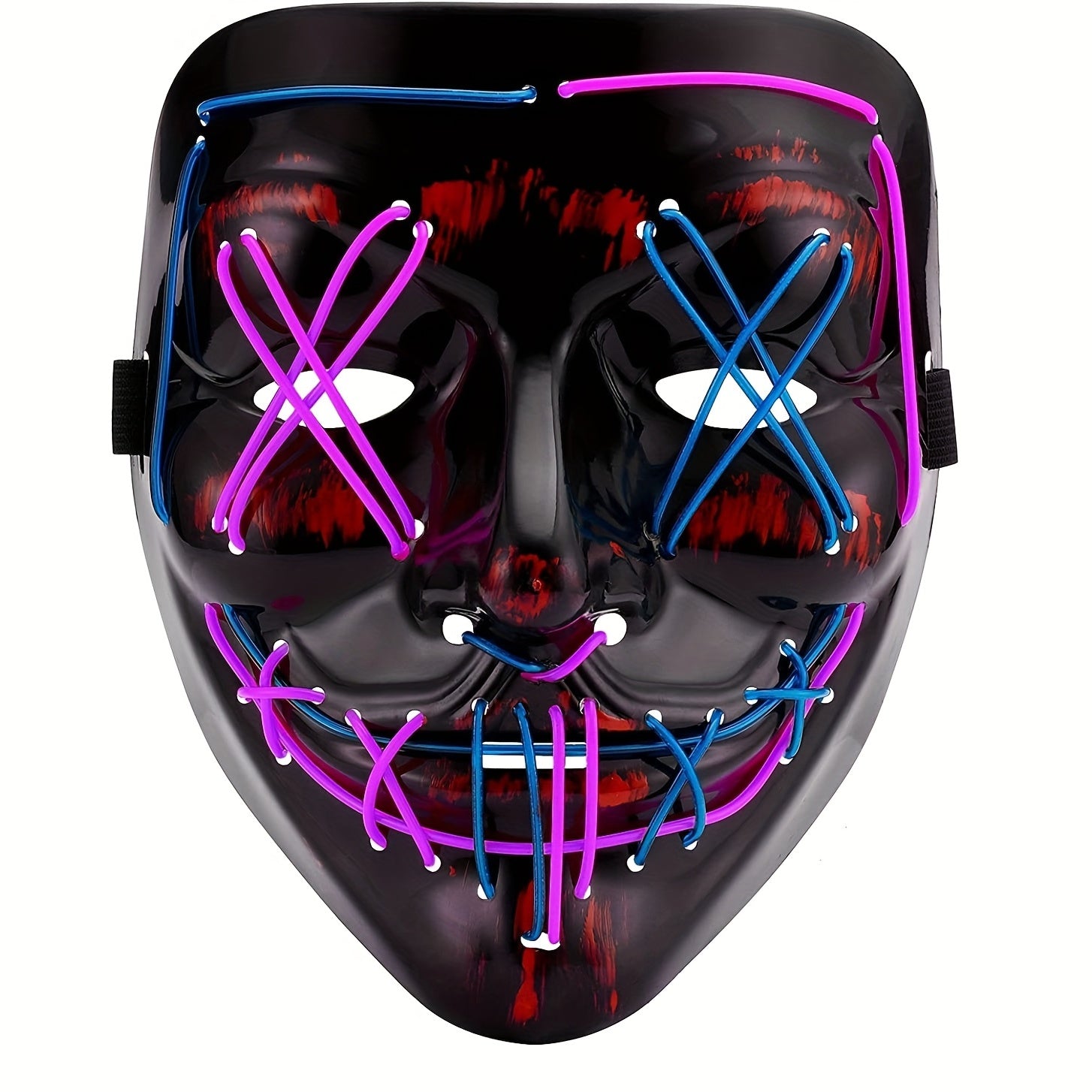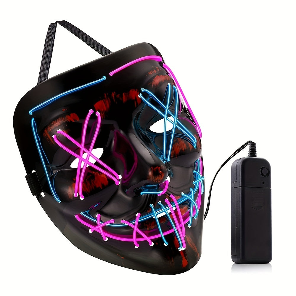 Step into a neon dystopia with our LED Purge Mask. Featuring glowing stitched eyes and a sinister grin, this mask is designed for the defiant and radiates unhinged energy. Command attention and leave an unforgettable impression at your next rave or festival.
