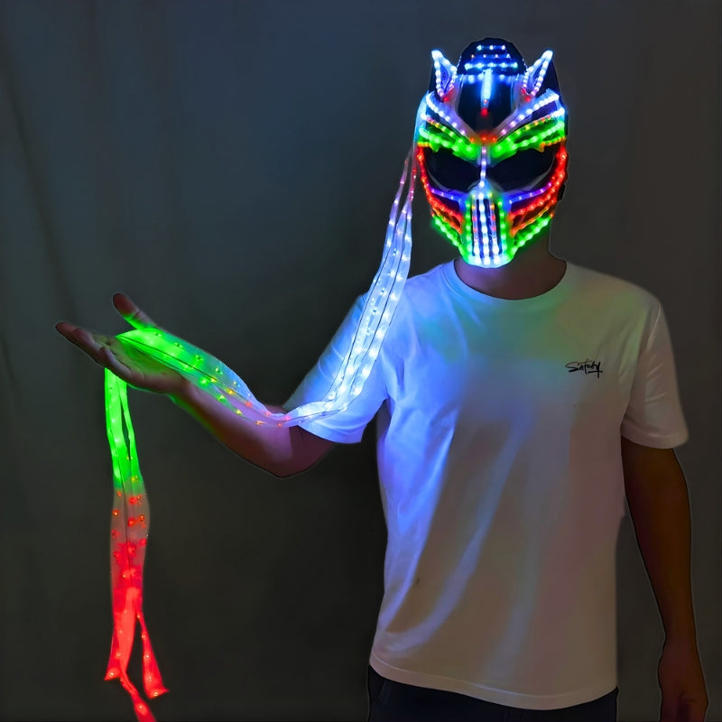 Fully customisable via remote control, it features 350+ LED patterns, colour modes and dynamic effects, allowing you to switch from hypnotic flow to full bass-drop chaos in seconds. Whether you're headlining a bush doof, performing at a festival, or dominating the dancefloor, this mask ensures all eyes stay locked on you.