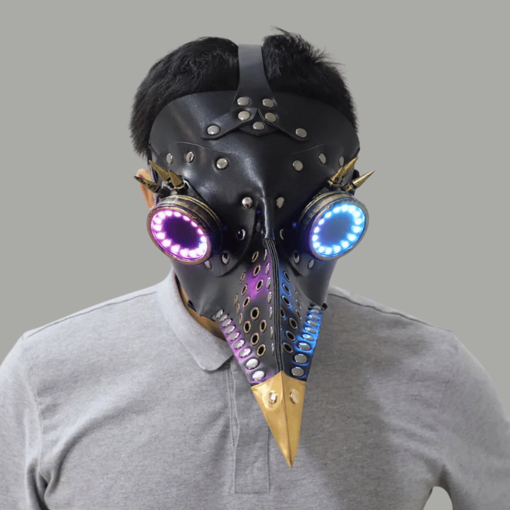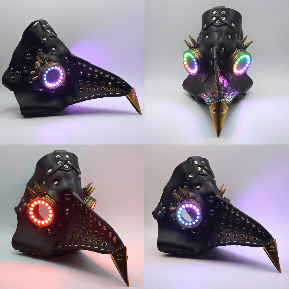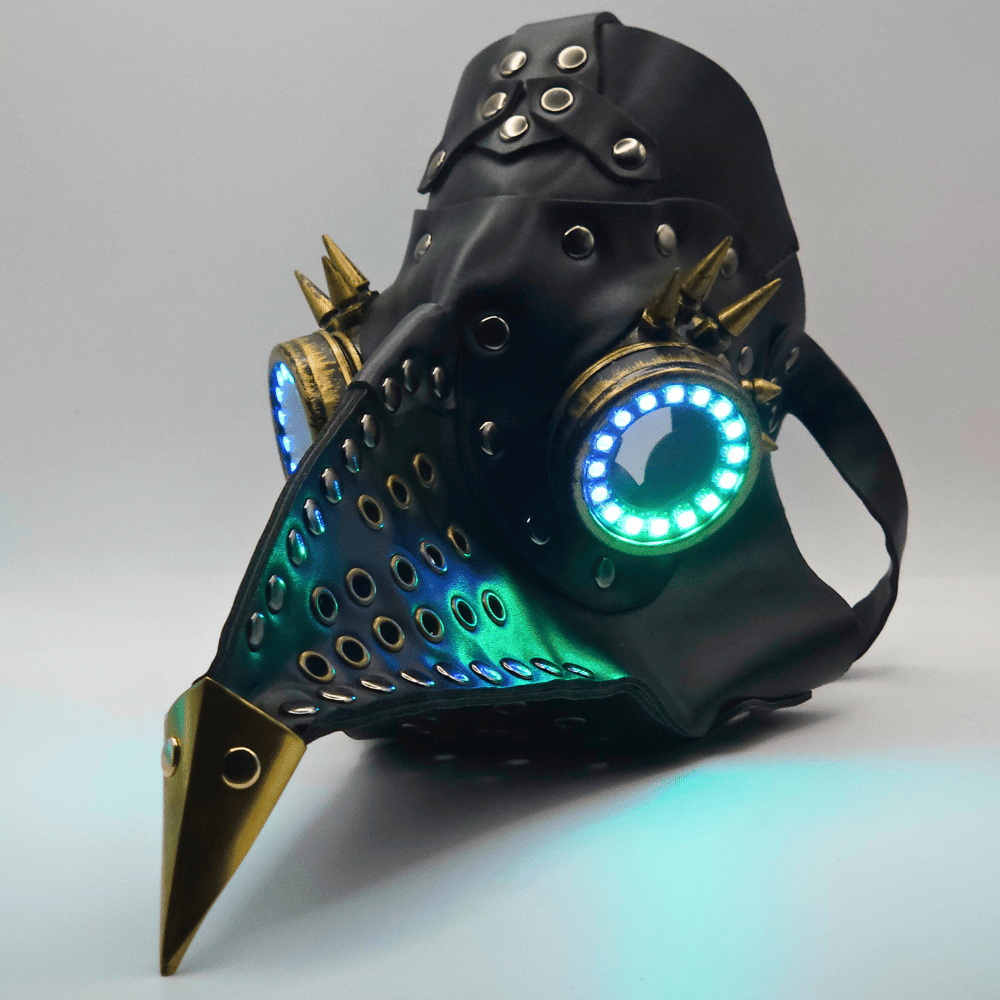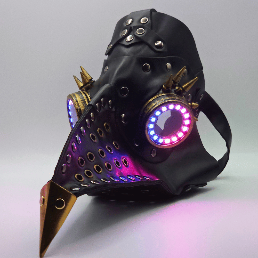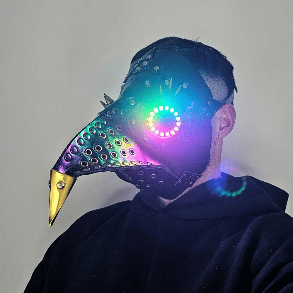 Introducing the Plague LED Mask – a fusion of steampunk grit and next-gen rave tech made for hardcore ravers who demand the highest quality. With fully customisable remote-controlled multicolour LEDs and a post-apocalyptic aesthetic, your aura will radiate to those around you and turn heads at your next rave or music festival.
